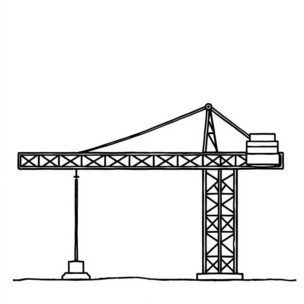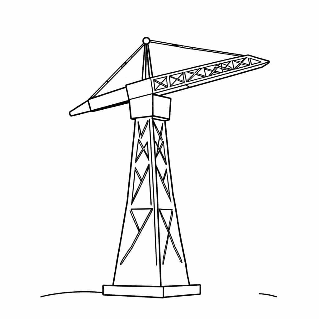 - 배경을 꾸며보세요: 타워크레인이 서 있는 곳은 어디일까요? 높은 빌딩이 있는 도시? 아니면 푸른 자연 속 다리 건설 현장? 주변 풍경을 함께 그려 넣어 이야기를 만들어 보세요.