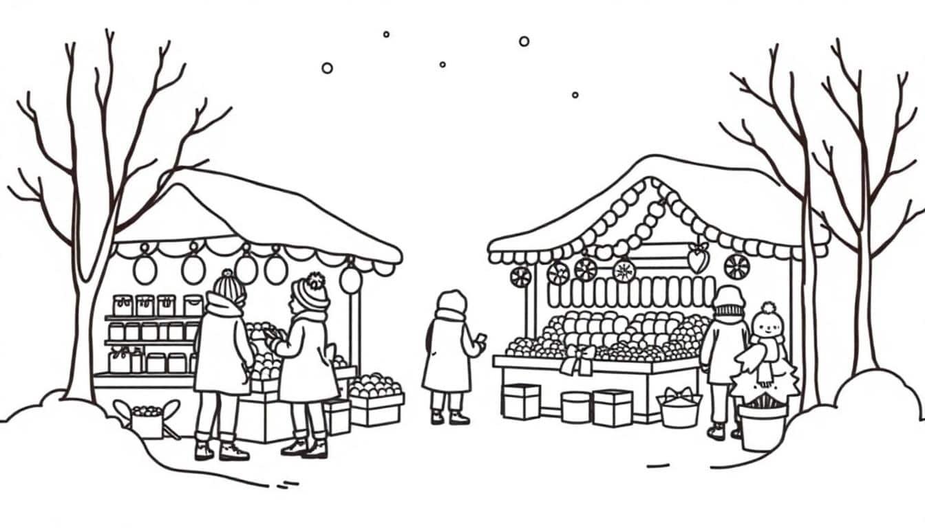 안녕하세요, 사랑스러운 아이들과 함께 따뜻하고 포근한 겨울을 보내고 싶은 부모님들을 위해 준비했어요! 오늘은 반짝이는 불빛과 맛있는 간식, 그리고 정겨운 사람들로 가득한 ‘겨울마켓’을 주제로 한 특별한 색칠 도안을 가지고 왔답니다. 아이들의 작은 손가락으로 세상에 단 하나뿐인 겨울마켓을 만들어갈 시간을 상상해보세요. 추운 날씨도 잊게 할 즐거운 색칠 놀이가 우리 아이들의 창의력과 집중력을 쑥쑥 키워줄 거예요!