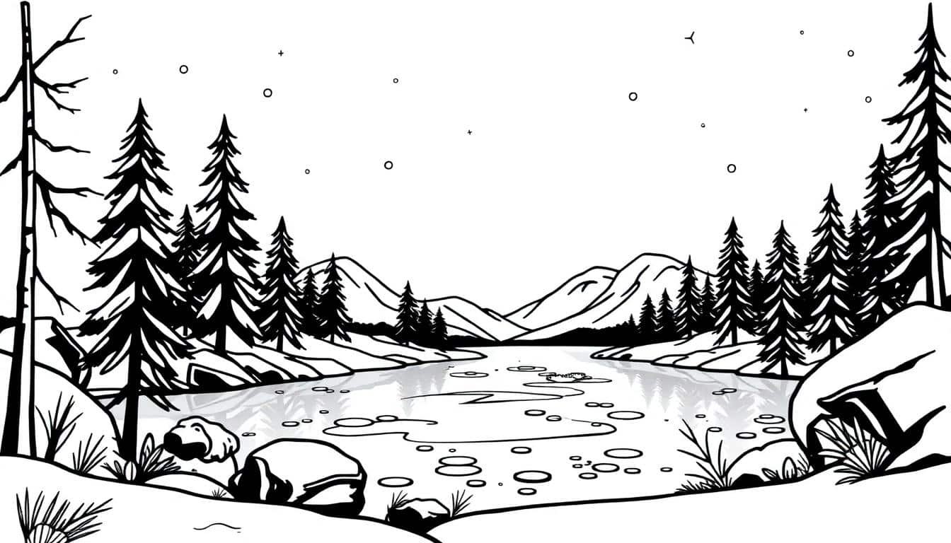 - 배경 꾸미기: 호수 주변의 나무나 하늘, 땅에 눈이 쌓인 모습 등을 자유롭게 그려 넣어 더욱 풍성한 그림을 완성해보세요.