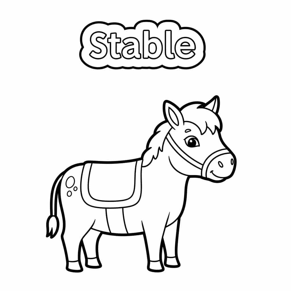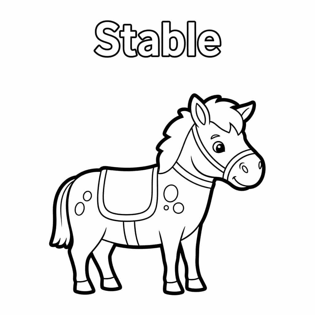 마굿간은 말들이 살고 있는 집이에요. 넓은 마굿간 안에는 말들이 편안하게 잠들 수 있는 칸칸의 마방이 있고, 신선한 물을 마실 수 있는 물통, 그리고 맛있는 건초가 가득 쌓여 있답니다. 때로는 말들을 돌보는 친절한 아저씨나 아주머니도 만날 수 있어요. 마굿간은 말의 털을 빗겨주고, 깨끗하게 목욕시켜주며, 건강하게 지낼 수 있도록 돌봐주는 아주 중요한 장소이지요. 우리 친구들은 마굿간을 색칠하면서 말들이 어떤 모습으로 쉬고 있을지, 또 어떤 소리가 들릴지 상상해볼 수 있어요. 마굿간 벽은 어떤 색깔일까요? 지붕은요? 건초는 어떤 노란색으로 칠해야 가장 맛있어 보일까요?