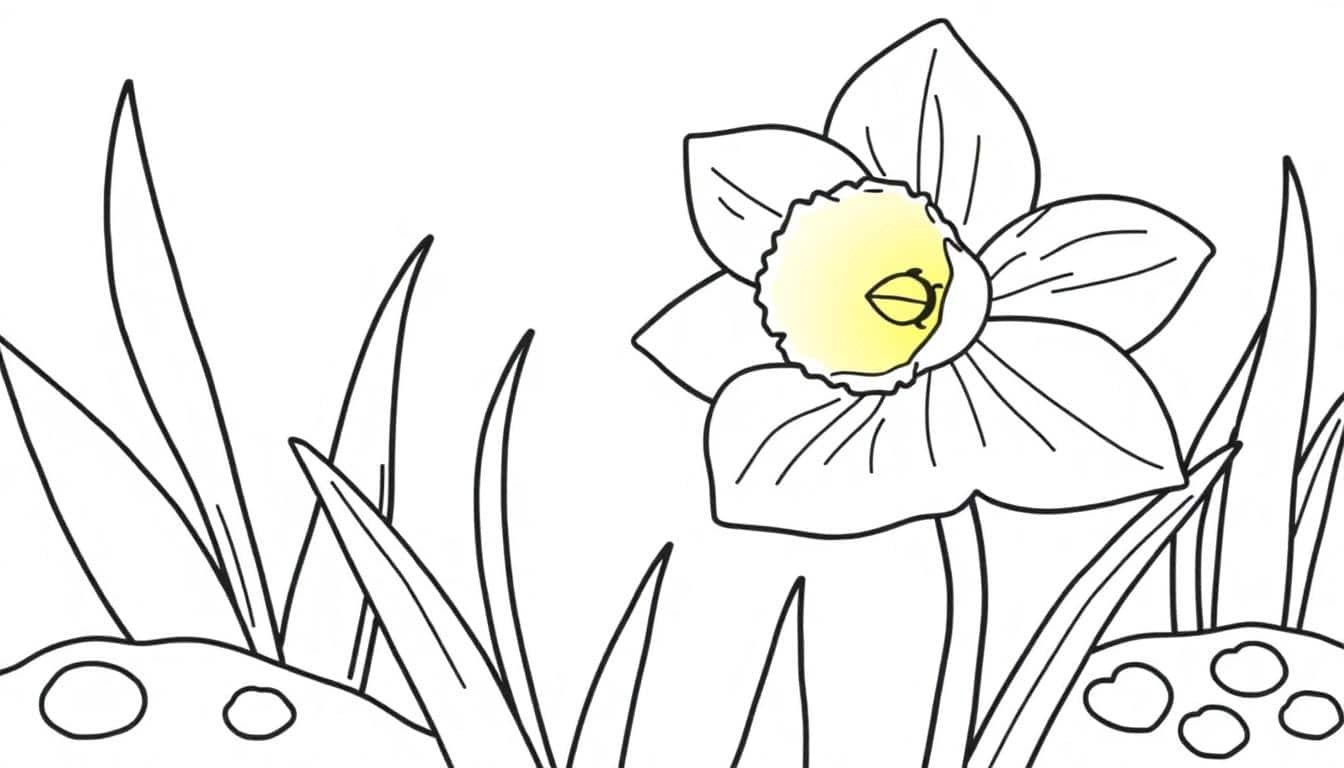 - 배경 꾸미기: 수선화만 칠하고 끝내지 마세요! 수선화 주변을 파란 하늘, 구름, 혹은 무지개로 채워 넣어 하나의 멋진 봄날 풍경을 완성해 보세요.