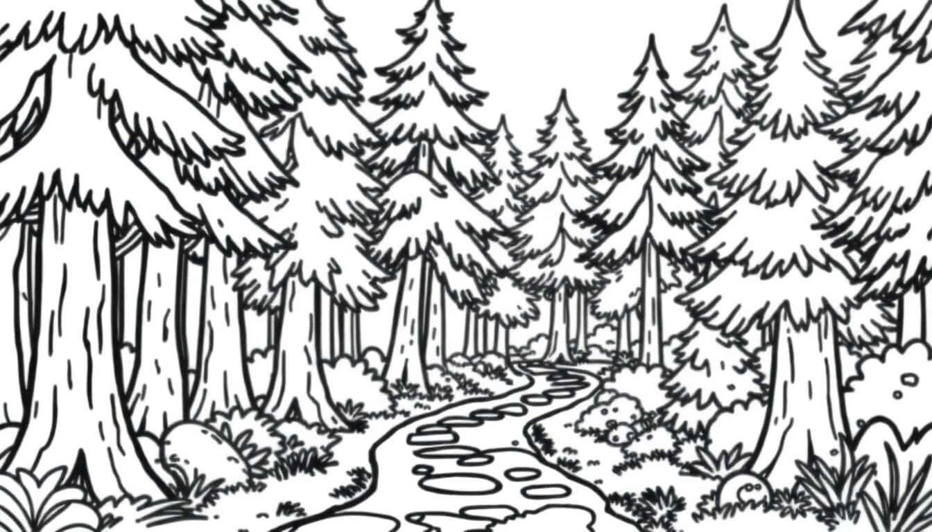자연의 생명력을 느끼는 숲속길 색칠 놀이