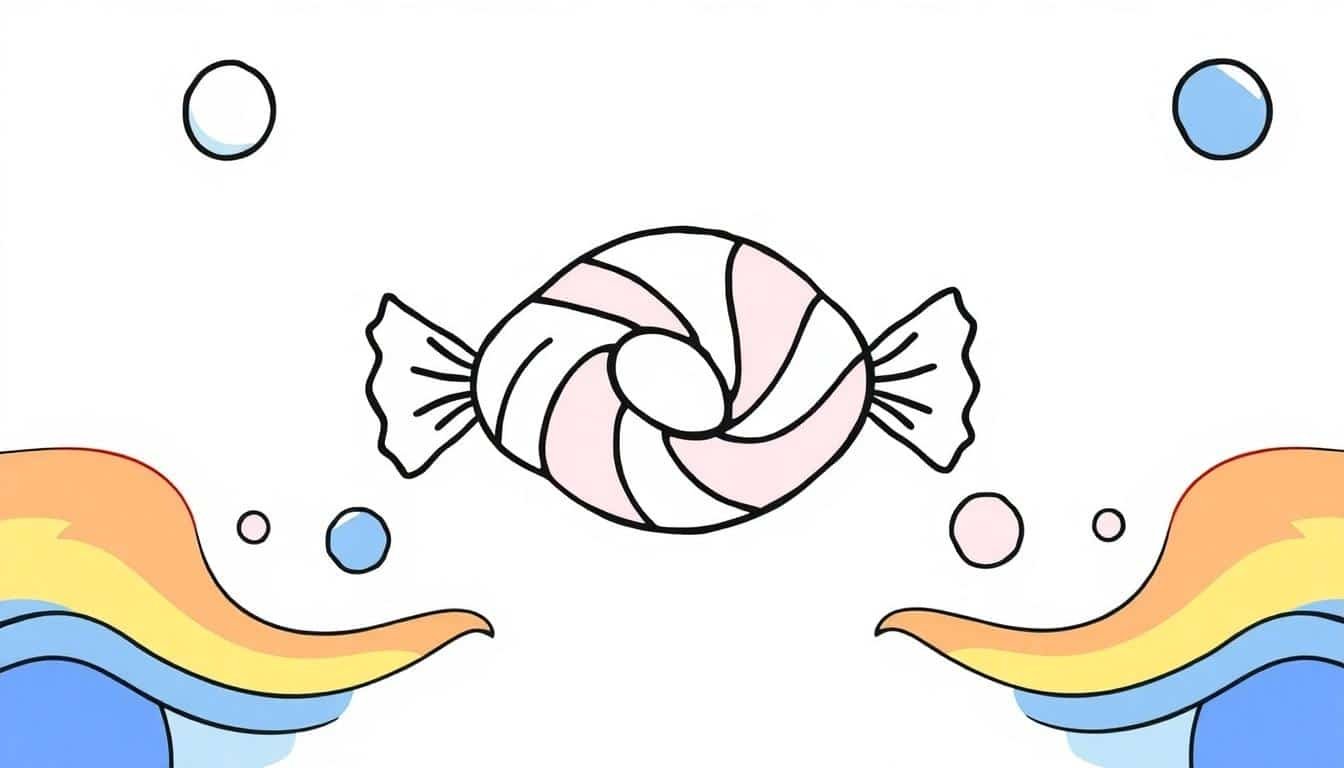 • 재질감 표현하기: 리본 부분은 부드러운 느낌을 위해 연한 색으로 겹쳐 칠하고, 캔디 부분은 젤리처럼 투명하게 보이도록 테두리만 진하게 칠해보는 연습을 해보세요.