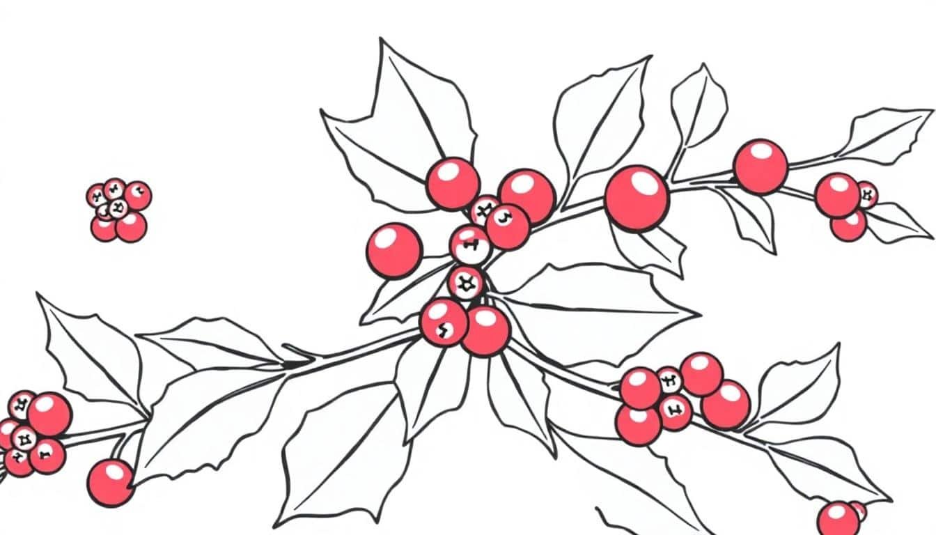 홀리베리는 보통 겨울철에 볼 수 있는 아름다운 열매예요. 반짝이는 초록 잎사귀 사이로 붉게 익어가는 모습이 마치 작은 보석 같답니다. 아이들에게 홀리베리를 보여주며 ‘이 열매는 어떤 계절에 피어날까?’, ‘무슨 색깔로 칠하면 가장 예쁠까?’와 같은 질문을 던져보세요. 단순히 색칠을 넘어 자연 관찰 학습의 기회가 될 수 있습니다.