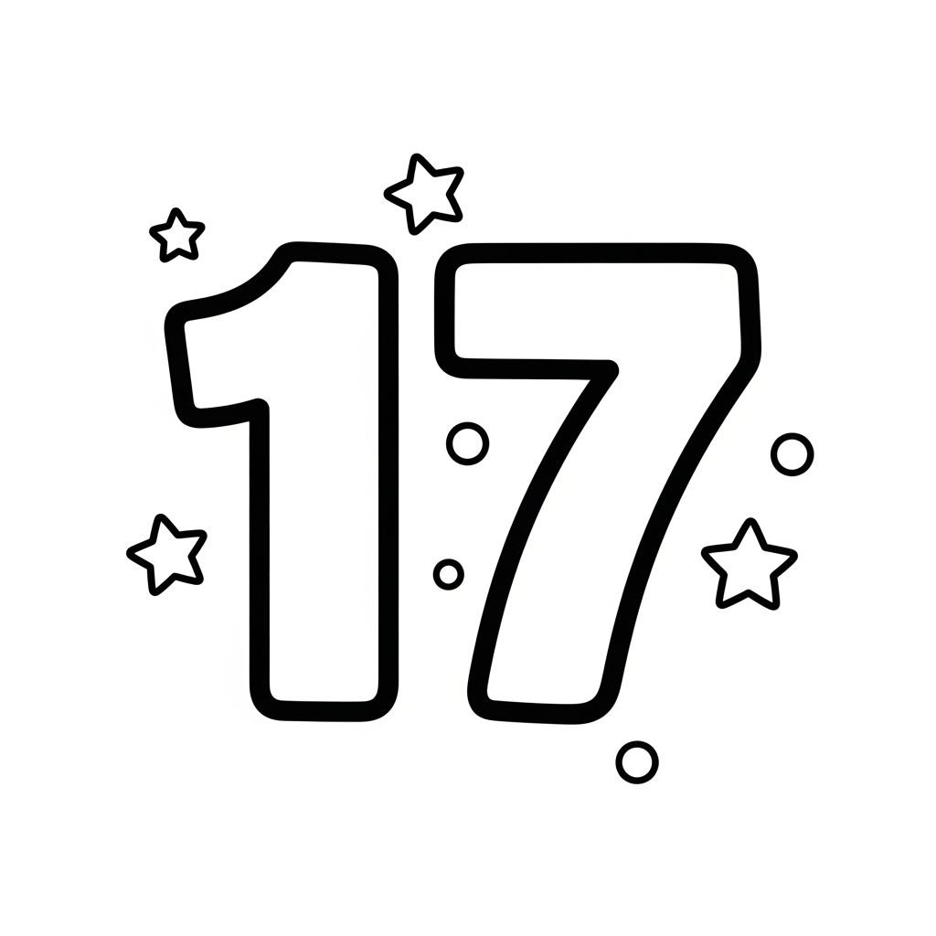 숫자 17은 우리 주변에서 생각보다 자주 만날 수 있는 숫자예요. 예를 들어, 달력에서 17일째 되는 날을 볼 수 있고, 17개의 맛있는 과자를 세어볼 수도 있죠. 17은 10보다 크고 20보다 작은 숫자이며, 숫자 ‘1’과 ‘7’이 나란히 서 있는 모습이 참 인상적이에요. 아이들과 함께 17이라는 숫자를 보면서 “무엇이 17개 있을까?” 하고 질문을 던져보세요. 주변 사물 중에서 17개를 찾아보거나, 17까지 세어보는 놀이를 함께 한다면 숫자에 대한 인지 능력을 더욱 높일 수 있습니다. 아이들은 17이라는 숫자의 모양을 색칠하면서 자연스럽게 숫자의 형태를 익히고, 나아가 수의 개념을 재미있게 배울 수 있을 거예요.
